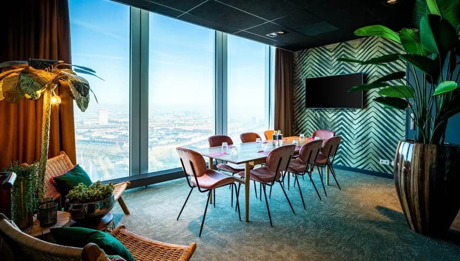 Get a fresh perspective of Amsterdam from across the serene River IJ. Situated in the famous A’DAM Tower, a five-minute ferry ride from Amsterdam Central Station, this venue has three riverside studios to choose from, offering abundant natural light and calming blue views. Take one room, or book the entire space - and its fabulous 360 outside deck, Forbidden Garden - for a large event. Hybrid and livestream meetings are made easy with tech equipment on hand, and catering is also available.