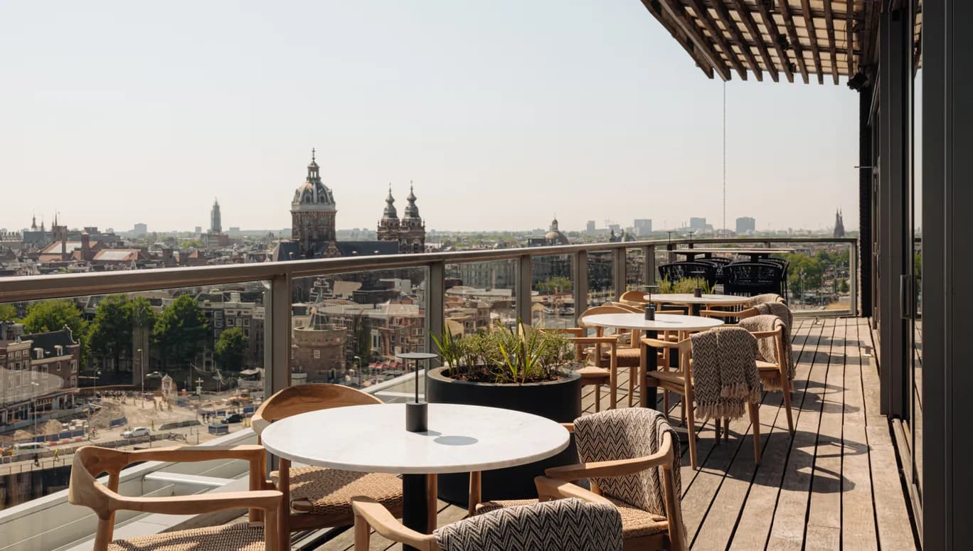 Next to W Lounge, there is also Mr Porter - a steak restaurant and bar on the top floor of W Amsterdam, where you can lounge on the roof terrace and soak up the views. With a panorama of the Royal Palace on Dam Square, among other things, this is one of the most high-end locations to enjoy good weather vibes, exclusive sky-high views and delicious drinks to pair with them.