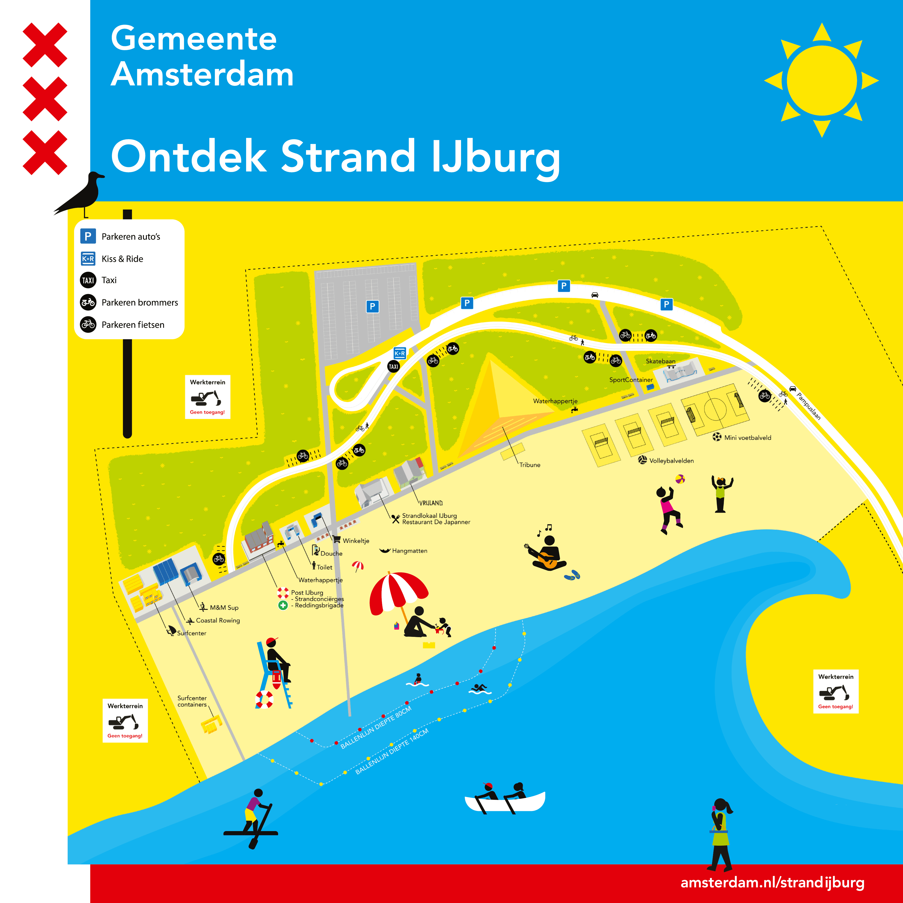 Strand IJburg is a lovely city beach in Amsterdam Oost, which is part of Strandeiland, the largest island of the IJburg archipelago. Nice weather? Leave the busy city centre and discover a new part of Amsterdam for swimming, sports and relaxing. Bring your picnic basket and your BBQ, because you can barbecue on IJburg beach!