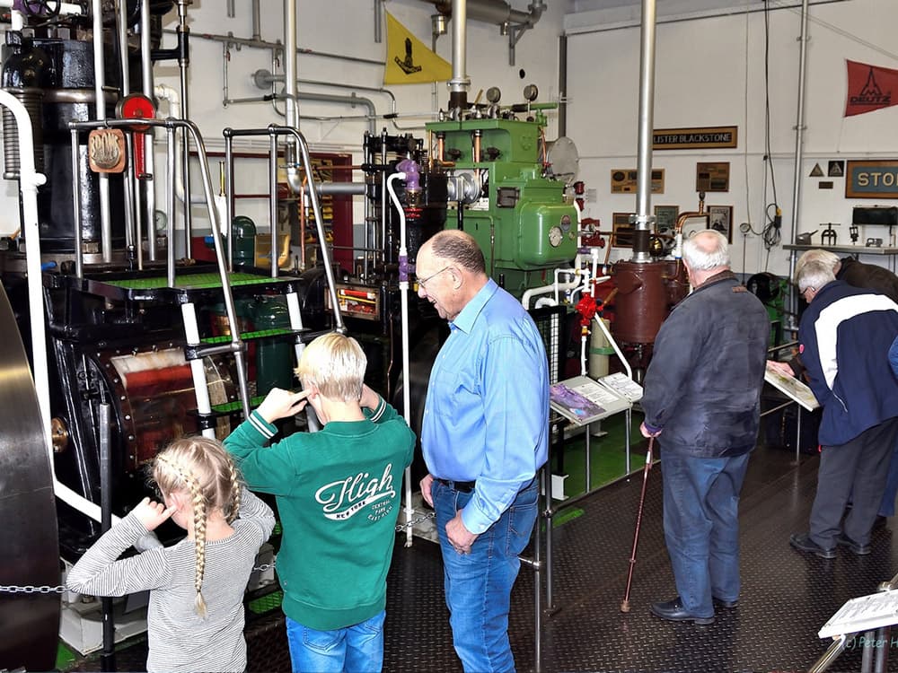 In de motorenhal draaien elke laatste zaterdag van de maand de oude scheepsmotoren, een indrukwekkend gebeuren. Op een nagebouwde scheepsbrug kunnen kinderen zich even kapitein wanen en in het buitenterrein ligt een heuse kotter afgemeerd.