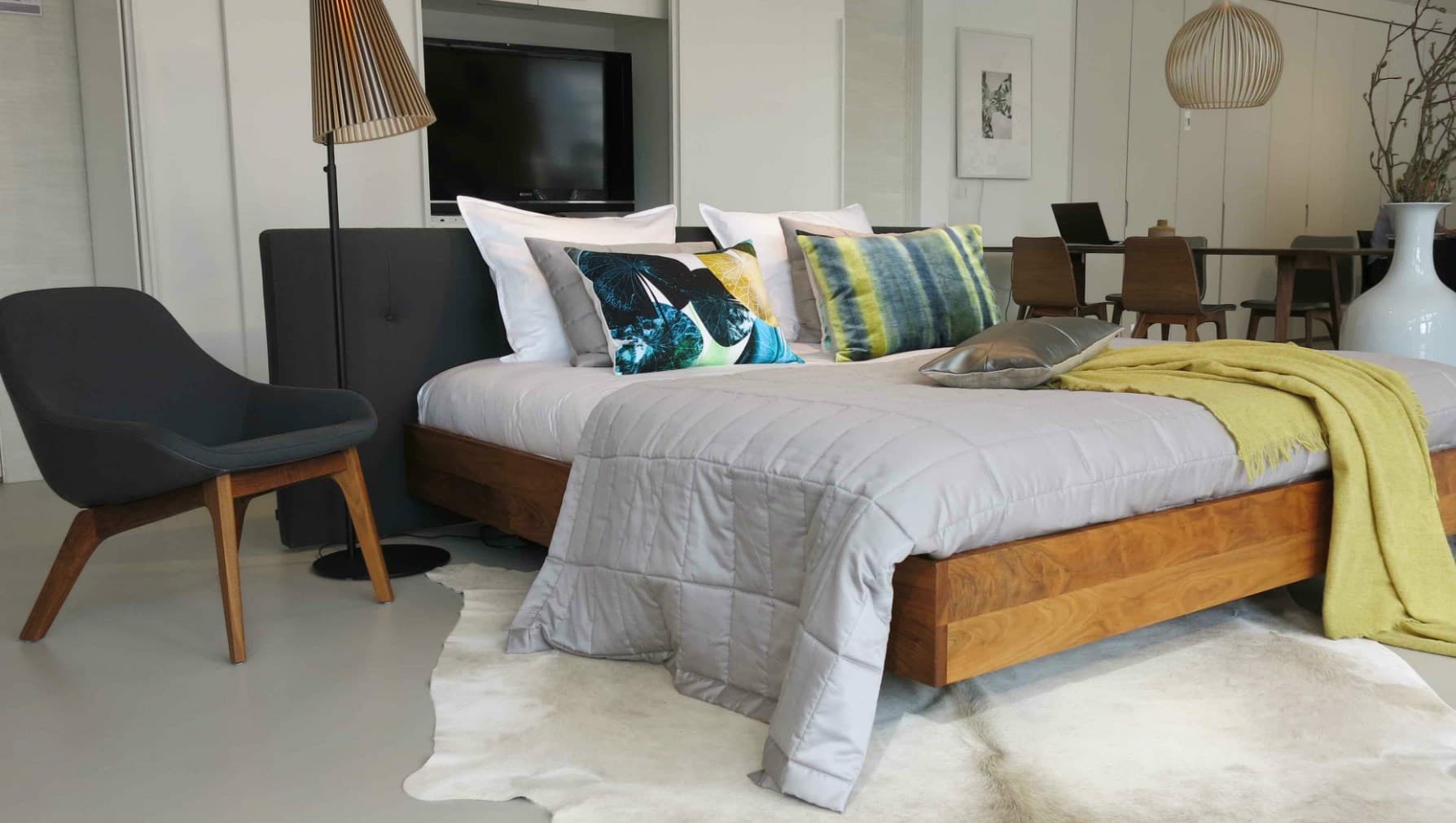 Op de twee verdiepingen van Bed Habits staan prachtige designbedden uitgestald, rijk gedrapeerd met superzachte plaids, kussens, spreien en lakens van onder andere het Amsterdamse home-couture merk MrsMe.