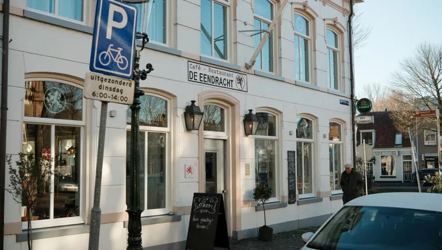Als je van mensen kijken houdt - en van eten en drinken natuurlijk - zit je bij de Eendracht letterlijk en figuurlijk goed. Het terras is gelegen aan de zijkant van het restaurant en kijkt uit op het monumentale gemeentehuis. De Eendracht beschrijft zichzelf als ‘de gezelligste huiskamer van Weesp’ waarin je voor lunch, diner en borrel welkom bent.