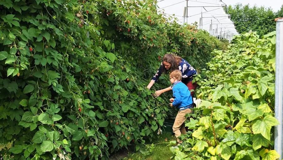 In Amsterdam West vind je de Fruittuin van West. Naast de boerderij, de kassen en stallen is hier een enorme fruittuin te vinden, vol met bessen, frambozen- en bramenstruiken en appel-, kersen-, en perenbomen. Maar er zijn ook nectarines, aardbeien, cranberries en druiven. Na het plukken van het fruit wordt deze gewogen en kun je het meenemen naar huis. Ook ’s winters kun je hier plukken, bijvoorbeeld in de witlof ‘grot’ of de shiitakekassen.